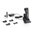 Deux batteries de rechange standard, 4 contre-peignes 1, 3, 4, 5, 6 mm, socle chargeur et de rangement, brosse de nettoyage, huile.